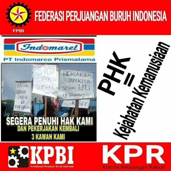 Buruh PT Indomarco Prismatama yang meminta haknya sampai terjadi mogok kerja sesungguhnya tindakan yang tidak bertentangan dengan peraturan perundang-undangan Republik Indonesia. Buruh yang bertahun-tahun bekerja mengabdi terhadap perusahaan dengan segala resiko kerja yang ada dan mampu mendatangkan keuntungan bagi perusahaan merupakan tindakan yang tepat, bukan tindakan melanggar hukum, bukan tindakan menghancurkan perusahaan bukan pula tindakan mengganggu keamanan Negara dan ketertiban umum. Sekali lagi buruh menuntut hak adalah tindakan berdasarkan konstitusi yang harapannya mampu meningkatkan kesejahteraan buruh bersama keluarganya dan mampu mendatangkan kebaikan bagi masyarakat dan negara. Maka pemecatan atau pemutusan hubungan kerja alias PHK adalah MASALAH, bukan tidak masalah.