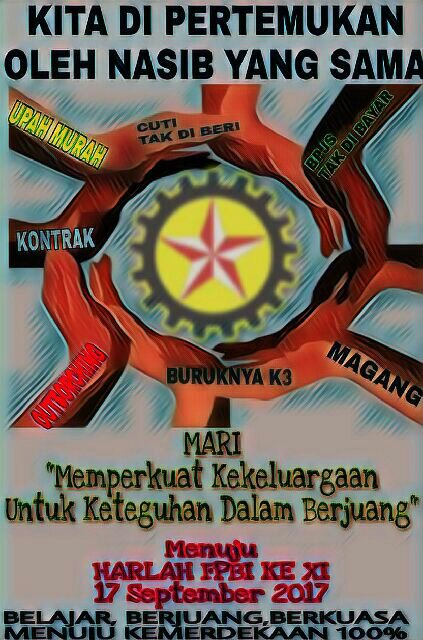 Jakarta – Dalam rangka memperingati Hari Lahir yang ke 11 tahun yang akan jatuh pada tanggal 17 September 2017, Federasi Perjuangan Buruh Indonesia akan mengadakan berbagai kegiatan yaitu Bakti Sosial, Turnament Sepakbola antar basis PTP (Pimpinan Tingkat Perusahaan), Panggung Budaya, dan kegiatan-kegiatan lainnya.