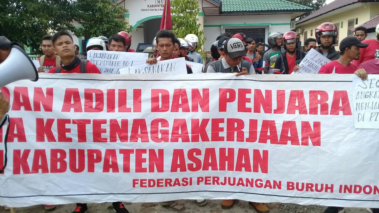 Kabupaten Asahan, Sumatera Utara – Hari ini tepat pada tanggal 31 Oktober 2017, Federasi Perjuangan Buruh Indonesia (FPBI) Cabang Asahan melakukan aksi massa di Dinas Tenaga Kerja Kabupaten Asahan. Aksi terebut dilakukan karena beberapa persoalan yang di alami oleh buruh anggota FPBI Cabang Asahan masih belum mendapatkan kejelasan.