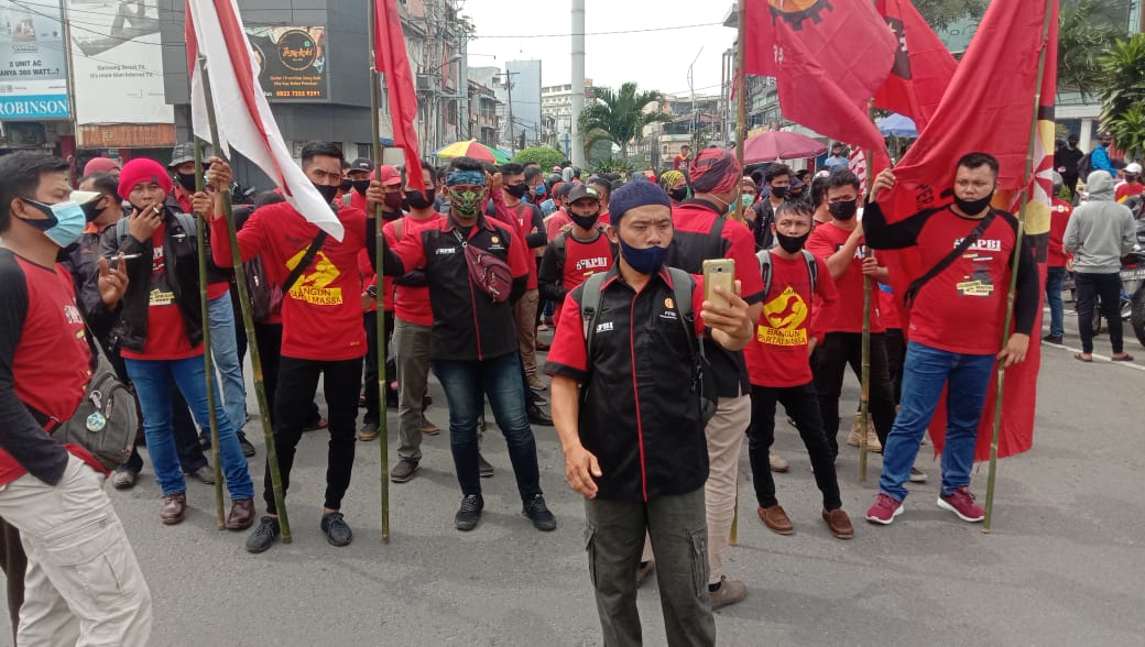 Massa aksi dari Federasi Perjuangan Buruh Indonesia gabungan dari Kabupaten Asahan dan kota Medan bersama Serikat Buruh lain di propinsi Sumatera Utara melakukan Unjuk Rasa menolak Omnibuslaw Cipta Kerja di depan DPRD Sumatera Utara. Jumlah massa aksi buruh gabungan diperkirakan ribuan massa memenuhi gedung DPRD SUMUT.