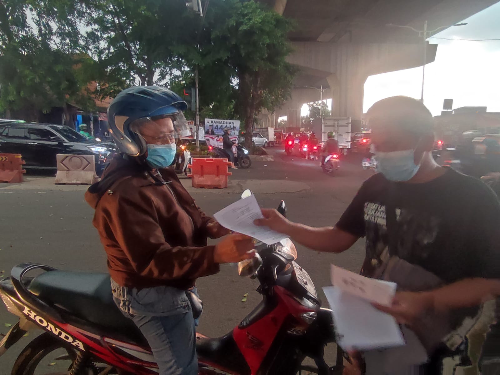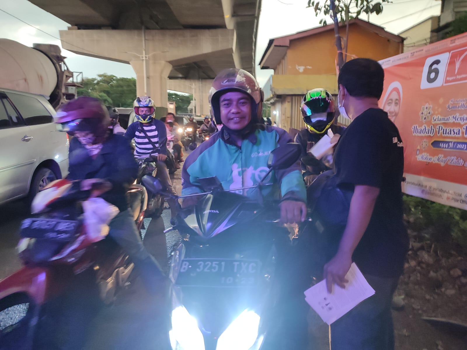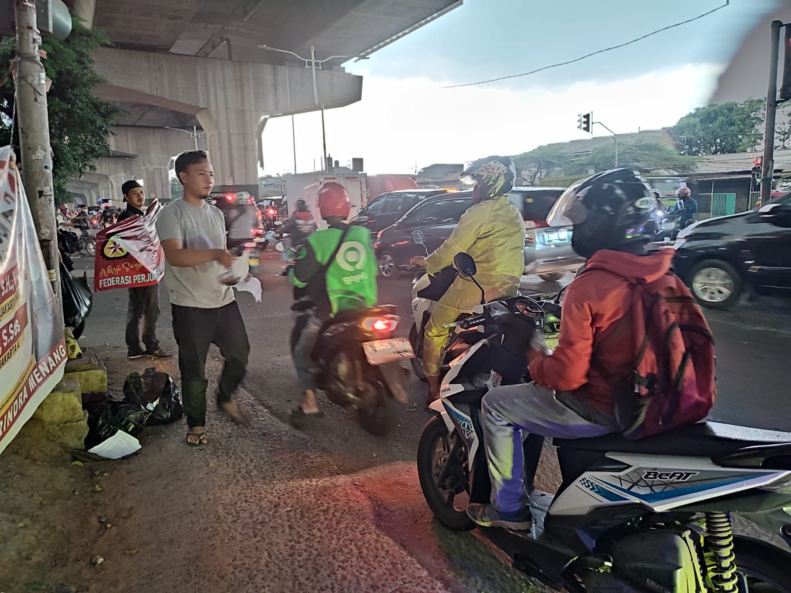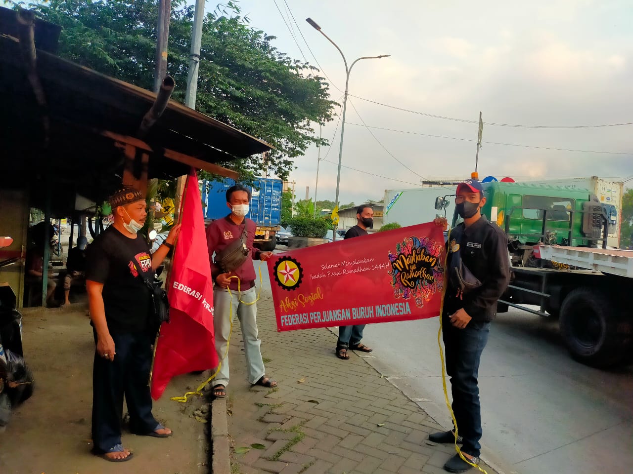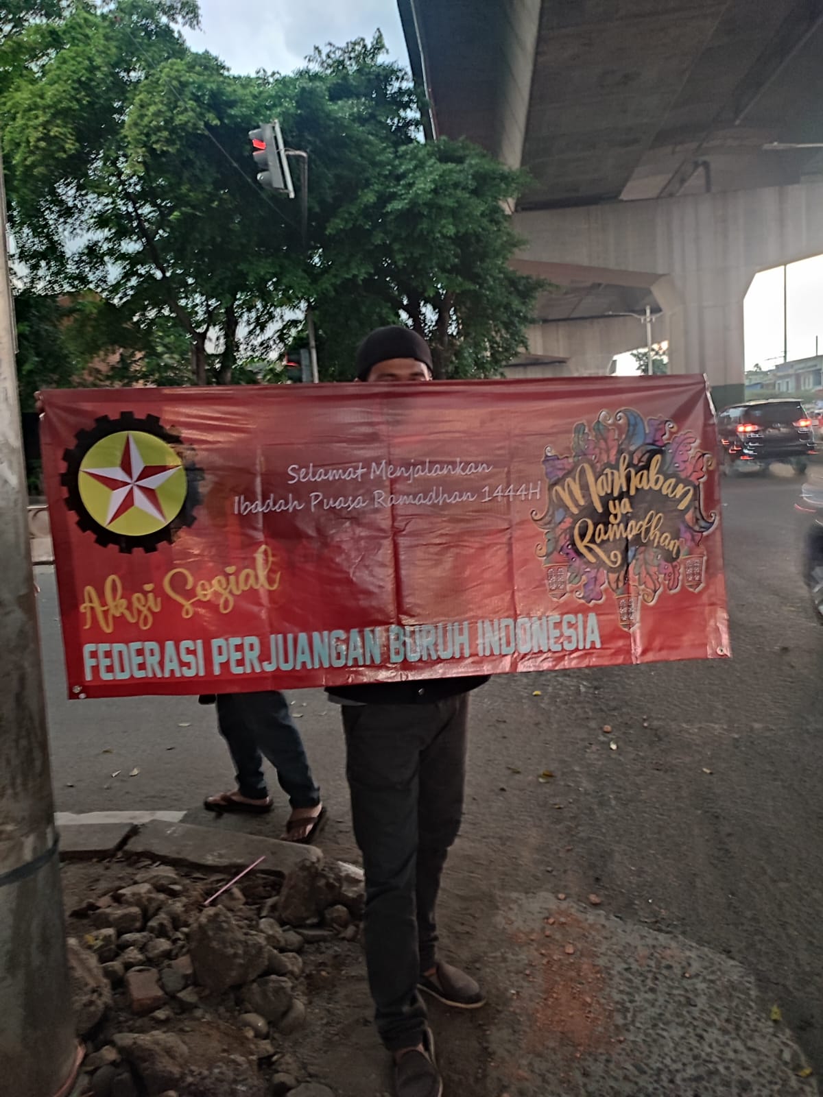 Dalam menyambut May Day 2023 Federasi Perjuangan Buruh Indonesia bagi-bagi takjil kepada pengguna jalan.