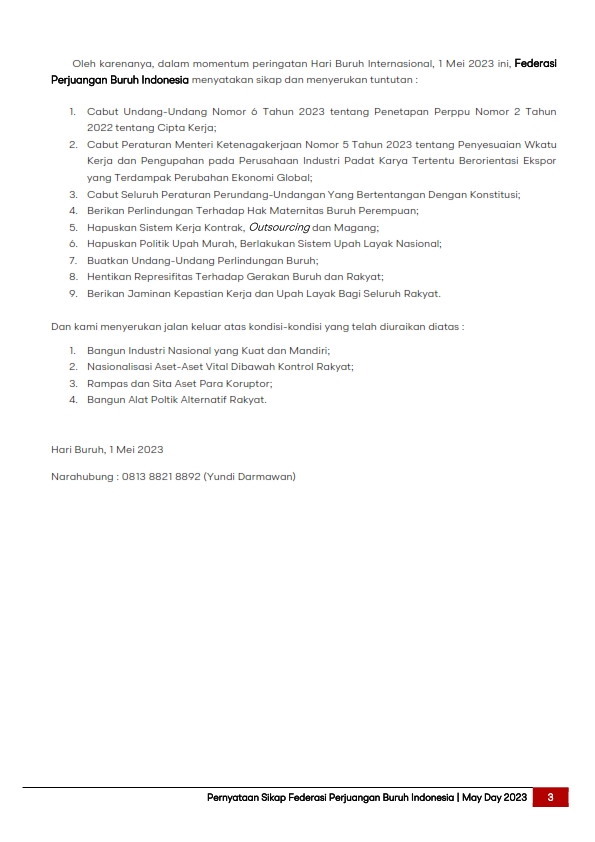 Pernyataan Sikap MAYDAY 2023
