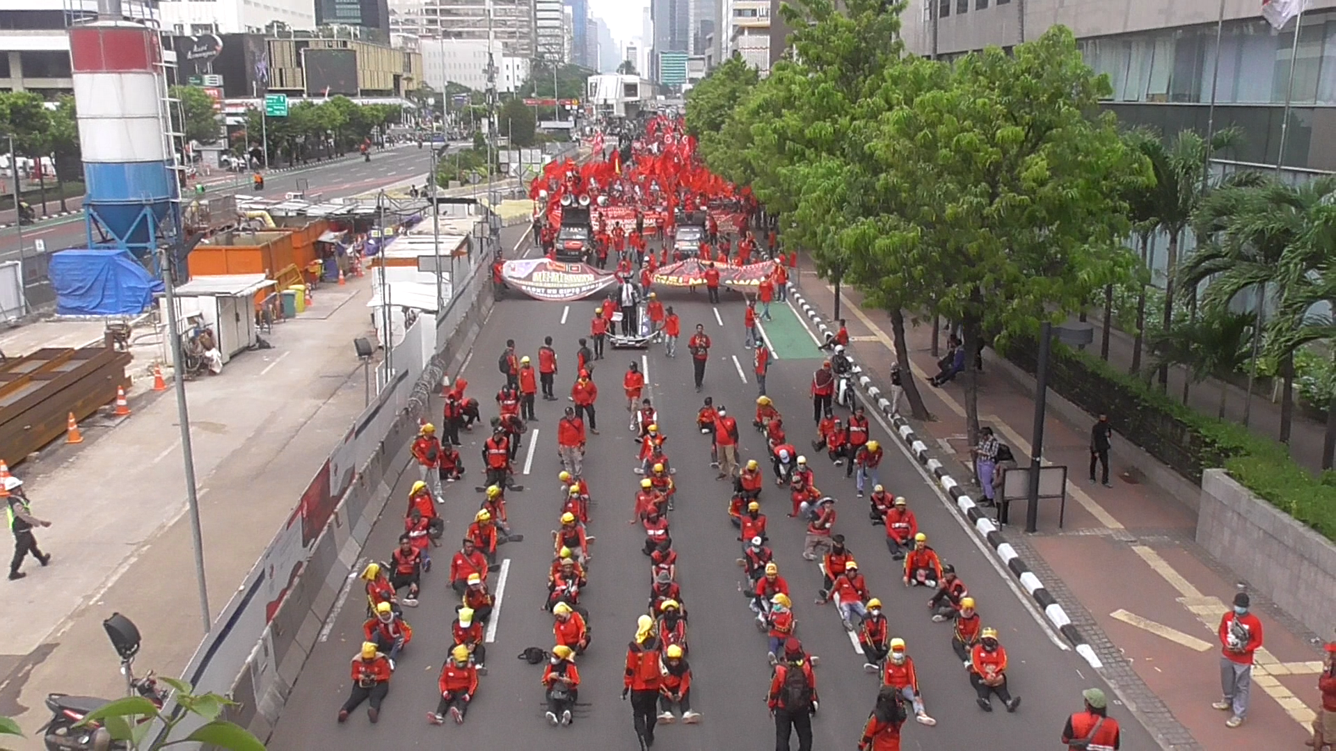 Massa GEBRAK akhirnya memutuskan untuk tetap melakukan Aksi dalam mera Hari Buruh Sedunia di depan Patung Kuda, dengan diisi oleh orasi bergantian oleh beberapa orator dari berbagai organisasi yang tergabung dalam Aliansi GEBRAK yang menyampaikan beberapa orasi-orasi politik serta beberapa tuntutan Rakyat. Pembukaan dibuka dengan menyanyikan lagu Indonesia Raya yang lalu disambung dengan Orasi pembuka oleh Ketua Umum Konfederasi KASBI yaitu Saudara Sunar yang dilanjut oleh Ketua Umum Federasi Perjuangan Buruh Indonesia yaitu saudara Yundi dan dilanjut terus oleh orator – orator lainnya yang mewakili organisasi – organisasi peserta aksi.