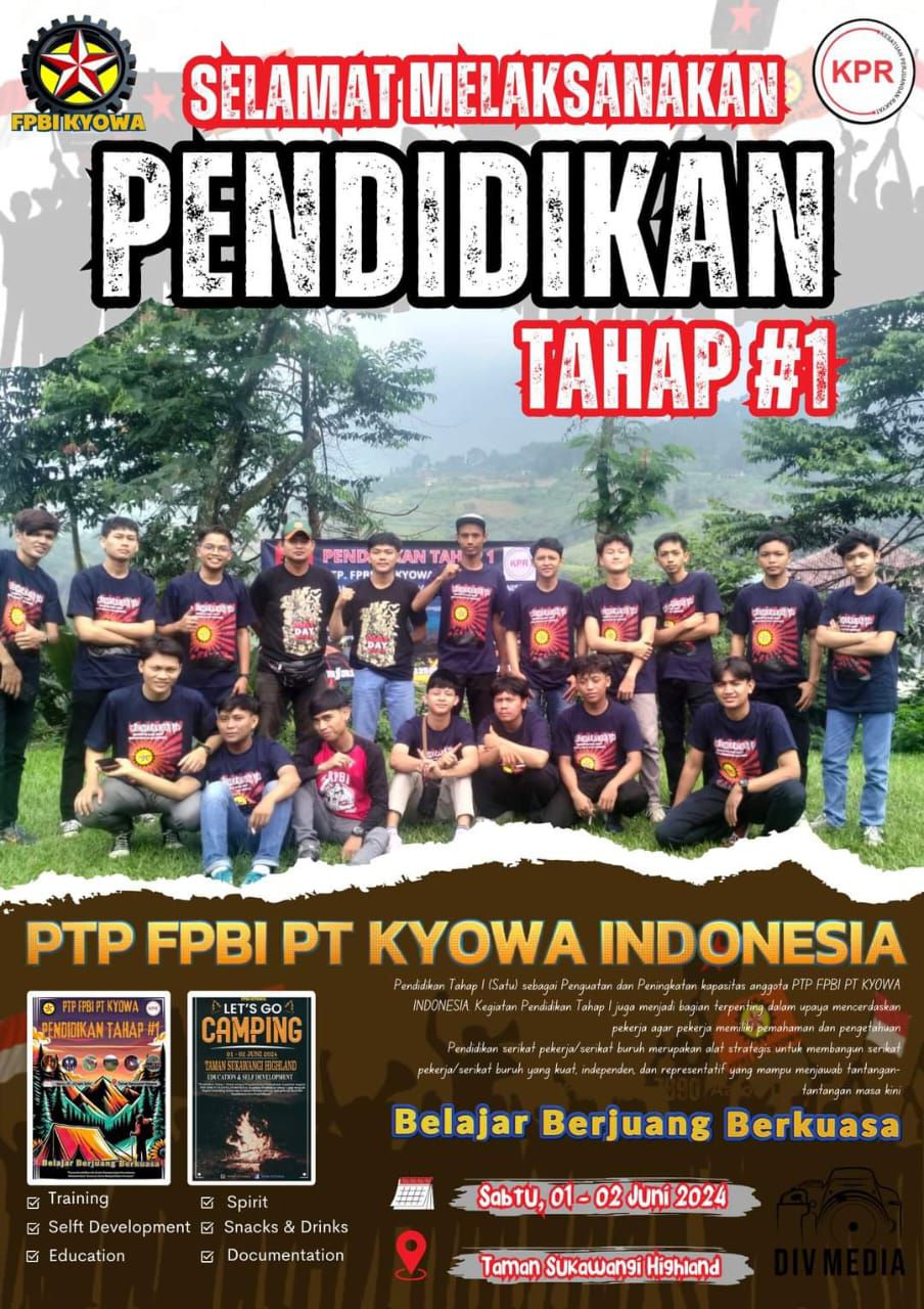 Ketua Serikat Imam Mengungkapkan, “Pendidikan serikat buruh merupakan alat strategis untuk membangun serikat pekerja buruh itu sendiri demi tercapainya seikat buruh yang kuat, dan representatif serta mampu menjawab tantangan-tantangan dinamika perburuhan masa kini. Oleh sebab itu PTP FPBI PT KYOWA INDONESIA secara rutin melaksanakan salah satu agenda “PENDIDIKAN PETA 1″ yang di fasilitasi oleh begian divisi pendidikan” ,Ujarnya.